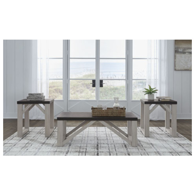With an antiqued finish, plank-effect styling and an angled brace design, the Dorrinson table set is sure to elevate the look and feel of a room. Whether you embrace cottage chic or fancy modern farmhouse decor, these tables will look right at home flanking a sofa or chair.