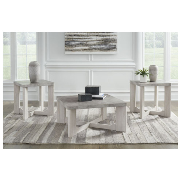Isn’t it time for a change? This table set captures the essence of today’s casual contemporary design. The thick tabletop sits on profiled legs and a stylish cross stretcher with a whitewash wood grain look. These tables exude a relaxed flair that’s sure to complement your good taste. Includes coffee table and 2 end tables.