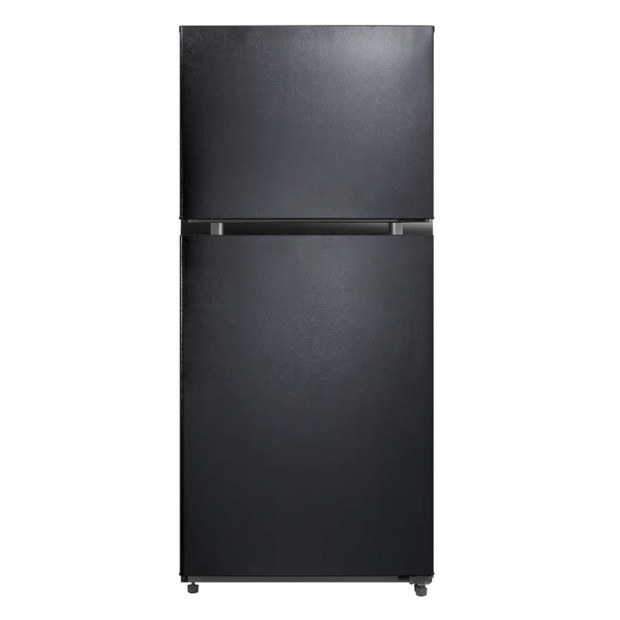 Introducing a spacious black 18 cubic foot refrigerator, perfect for all your food storage needs featuring glass shelves and gallon storage.