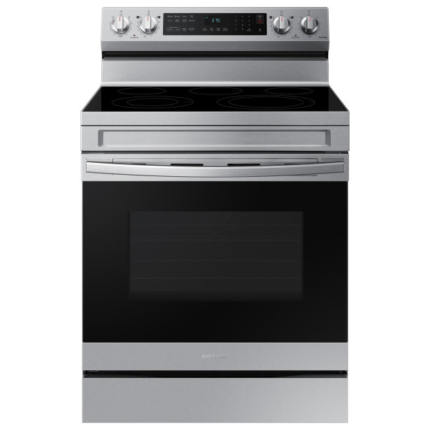 Upgrade your kitchen with the Samsung 30" Freestanding Electric Range — where style meets innovation. This stainless steel beauty features 5 Smoothtop cooking elements for precise heat control and a spacious oven packed with advanced features like air fry, convection, and wi-fi connectivity.