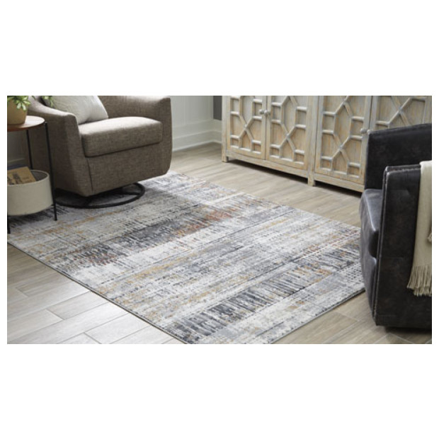 Calm, cool and collected. This rug takes inspiration from active contemporary lifestyles and chic sensibilities alike. Neutral hues and muted hints of color make the abstract pattern feel surprisingly sparse. This luxe rug is sure to lay beautifully under ultra-linear couches and sleek bed frames.