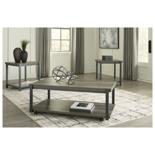 Wilmanden Gray/Blk 3pk Table set w/casters