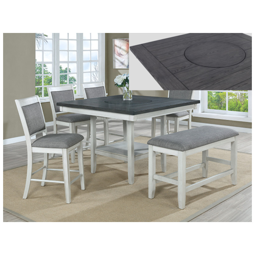Fulton Chalk Wht Lazy Susan CTR Table, Bench + 4ch