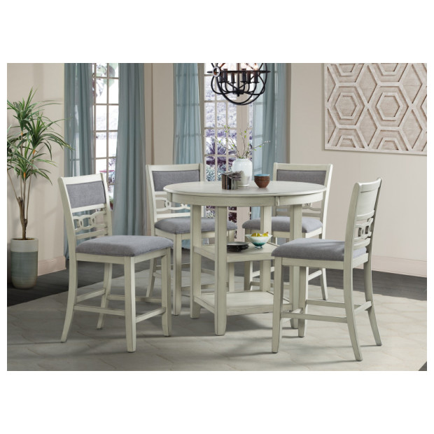 Amherst White CTR Table + 4 Chairs Gray Fabric