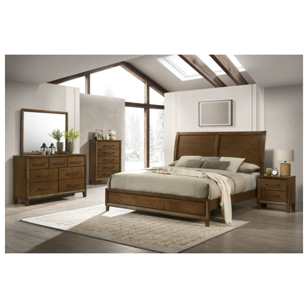 Elevate your bedroom with the warm and inviting charm of the Ballard Queen Bedroom Collection. Featuring clean lines, rich wood tones, and subtle mid-century styling, this set brings classic elegance with a modern twist. Bedroom set includes queen bed, dresser, mirror and nightstand.